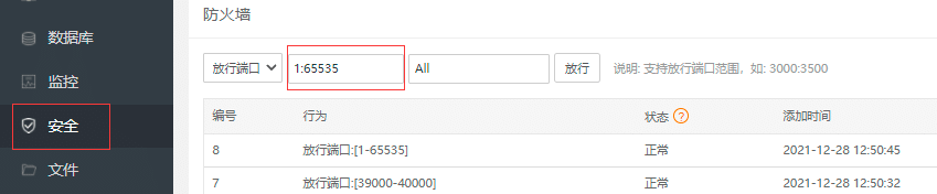 我们直接开放所有端口 1-65535,阿里云服务器在安全组中配置规则。