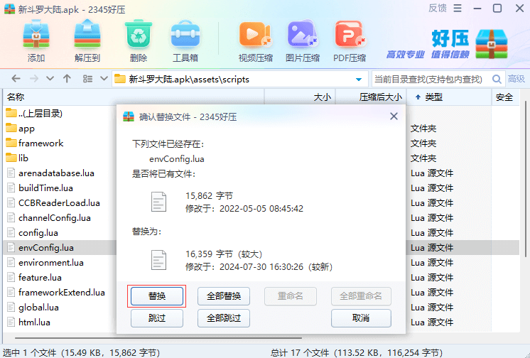 文件我放到了安卓修改目录下,用 notepad++ 编辑器打开,将 IP(111.230.105.124)替换成你的 IP 即可。找到新斗罗大陆.apk 文件,用好压压缩软件打开,将修改好的文件拖回对应的目录下替换。